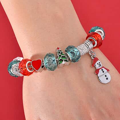 Add a festive sparkle to your look with this vibrant Multi Colour Crystal Charm Bracelet (Size 7.5). Designed with a secure snap clasp and crafted in high-shine metal, this bracelet features a fun arrangement of colourful faceted beads and seasonal charms like a snowman and Christmas tree. Each charm adds personality, while the shimmering crystals catch the light beautifully. Whether you're dressing for a celebration or simply want a cheerful accessory for the season, this bracelet makes a playful and heartfelt gift. A versatile piece that blends holiday spirit with charm and style, ready to complement your winter wardrobe or gifting list.