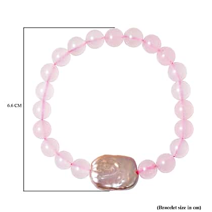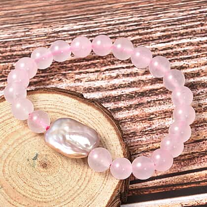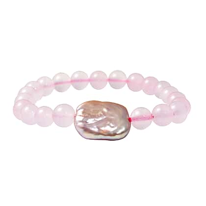 Keshi Pearl and Rose Quartz Stretchable Bracelet