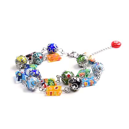 Multi Colour Murano Glass Adjustable Bracelet in Stainless Steel 7.5 with 2 inch Extender