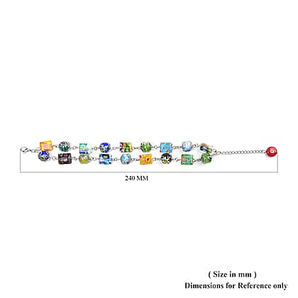 Multi Colour Murano Style Glass Bracelet (Size 7.5 with 2 inch Extender) in Stainless Steel