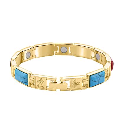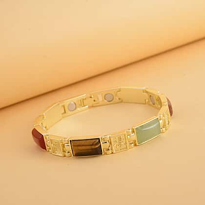 Multi Gemstone Magnetic Bracelet (Size - 7.25) in Yellow Gold Tone