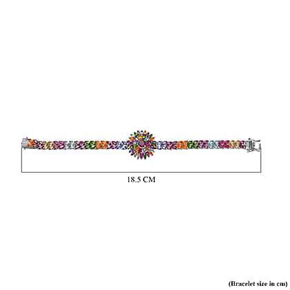 Multi Gemstones Cluster Bracelet (Size - 7) in Rhodium Overlay Sterling Silver 16.85 ct.