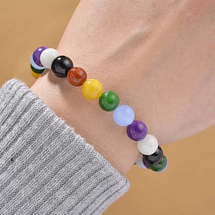 Bring balance, joy, and colour to your day with this multi jade stone bracelet (Size 7 Stretchable), featuring polished round beads in a striking spectrum of hues. Each bead is crafted from robust jadeite—highly valued for its rarity, strength, and vibrant natural tones including violet, green, amber, black, and sky blue. The stretchable band offers an easy, comfortable fit without clasps, making it ideal for everyday wear. Believed to support harmony, protection, and energy flow, this bracelet is both stylish and soulful. Perfect for women who appreciate meaningful, colourful jewellery with natural origins and a modern, wearable design.
