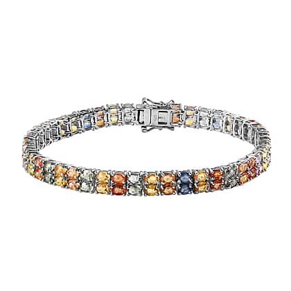 Multi Sapphire Tennis Bracelet (Size - 8) in Platinum Overlay Sterling Silver 20.240 Ct, Silver Wt. 14.64 Gms