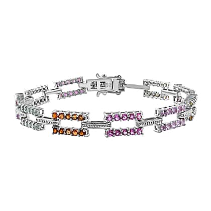 Indulge in the vivid hues of the rainbow with this stunning multi-tourmaline bracelet. The 3.75 carat tourmalines are perfectly complemented by the sparkle of natural Cambodian zircons, all set in a sturdy platinum overlay sterling silver. The bracelet's adjustable 8-inch length ensures a comfortable fit for all. You must add this to your jewelry collection.