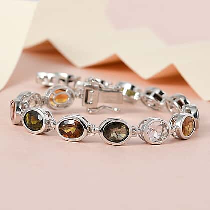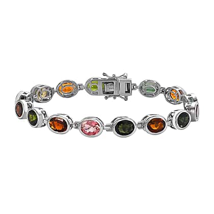 Multi-Tourmaline Bracelet (Size - 7.5) in Platinum Overlay Sterling Silver 17.10 Ct, Silver Wt. 13.40 Gms