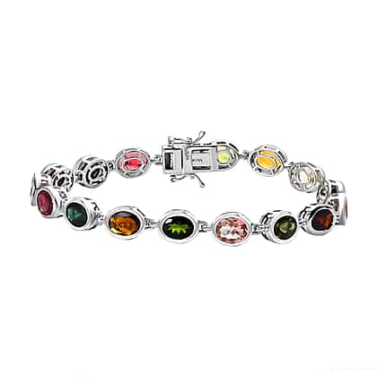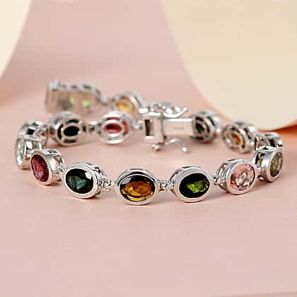 Multi-Tourmaline Bracelet (Size - 8) in Platinum Overlay Sterling Silver 16.97 Ct