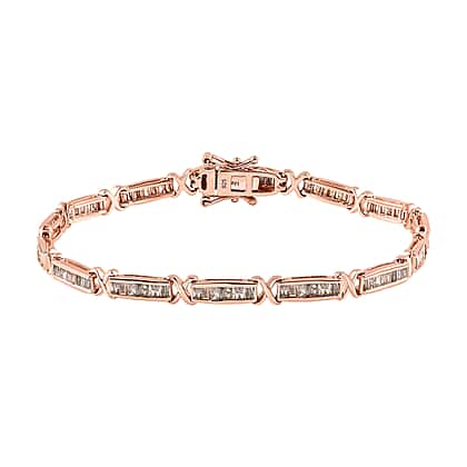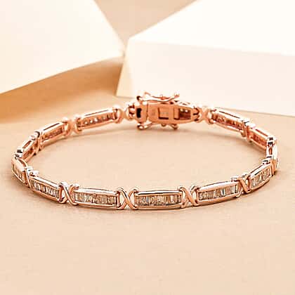 Natural Champagne Diamond Bracelet (Size - 7.5) in 18K Vermeil Rose Gold Plated Sterling Silver 2.50 Ct, Silver Wt. 9.10 Gms