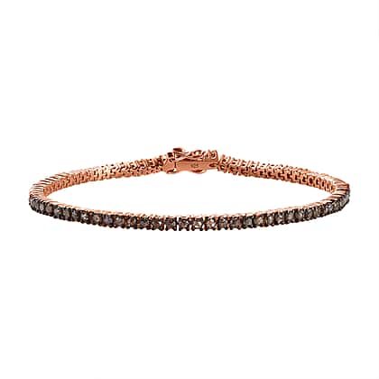 Natural Champagne Diamond Bracelet (Size - 7.5) in 18K Vermeil Rose Gold Plated Sterling Silver 4.00 Ct, Silver Wt 8.50 Gms