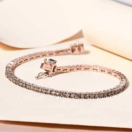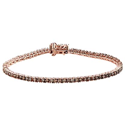 Natural Champagne Diamond Bracelet (Size - 7.5) in Rose Gold Overlay Sterling Silver 3.09 Ct, Silver Wt. 8.06 Gms