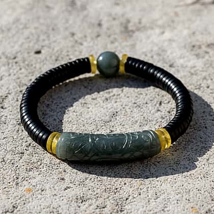Natural Jade, Amber, Coconut Shell Stone Bracelet 115.000 Ct.