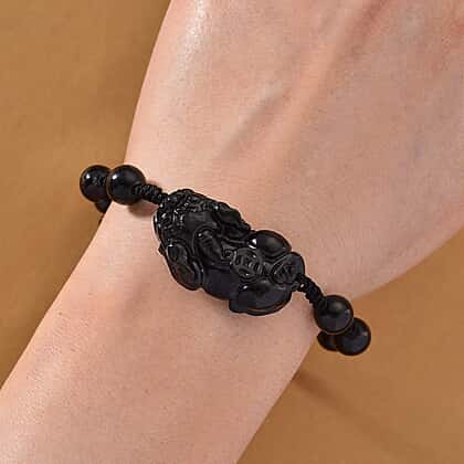 Natural Shungite Pixiu Adjustable Bracelet (Size 6.5 - 9 Adjustable) 70.00 Ct.