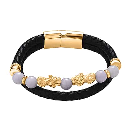 Natural White Jade Beads & Pixiu Charms Bracelet (Size 8) in Yellow Gold Plated 50.00 Ct.