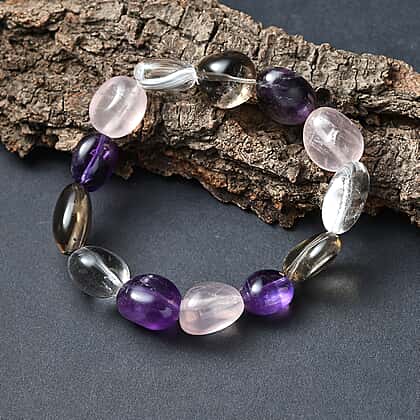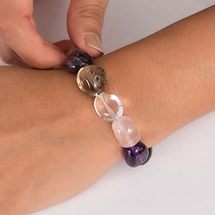 Neapolitan Dreams - Natural Zambian Amethyst,Galilea Rose Quartz, Smoky Quartz & Crystal Quartz Bracelet (Stretchable) 200.00 Ct.