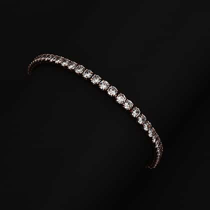 Style your outfit with this alluring simulated diamond tennis bracelet and make heads turn around. This beautiful bracelet is set in a rose gold-tone frame with a hinge clasp to secure the fit. It is decorated with simulated diamond rounds prong set in the frame, exhibiting bright sparkle and shine. Style it with a necklace and a ring by TJC to complete the set.