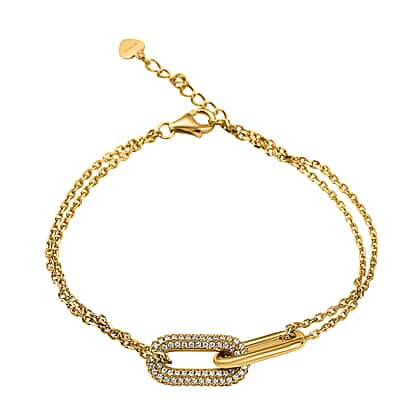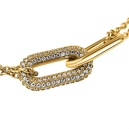 NY Closeout - Simulated Diamond Pave Link Bracelet (Size - 8 Inch Ext.) in Yellow Gold Overlay Sterling Silver, Silver Wt. 5.50 Gms