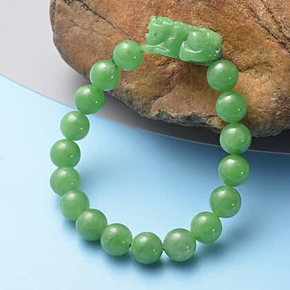 Green Jade Stretchable Pixiu Bracelet Size 7