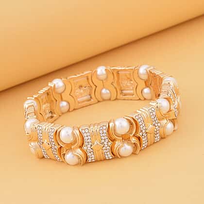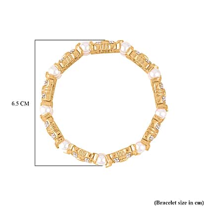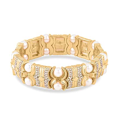 Close Out Deal- Designer Simulated Diamond & White Austrian Crystal Stretchable Bracelet (Size 6.5-7) in Yellow Gold Tone