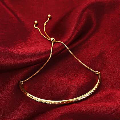 This modern and classic bracelet graces your outfit with its look. It is made from 925 sterling silver with a yellow gold overlay. It has a diamond cut design on the curve surface exhibiting. This stylish bracelet features a silicone ball clasp that can be adjusted per your wrist size. Pair it with a diamond-cut ring to complete the look.
