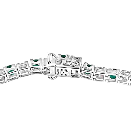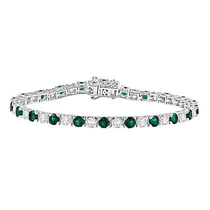 D'joy Lab Grown Emerald, Moissanite Tennis Bracelet (Size 7.5) with Box Clasp in Rhodium Overlay Sterling Silver 10.13 Ct.