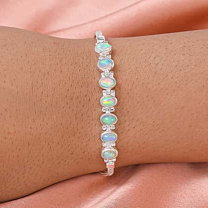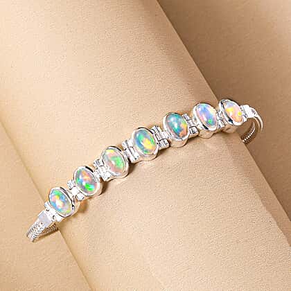 Ethiopian Welo Opal 7 stone Bracelet in Sterling Silver 2.37 Ct, Size 7.5 inches