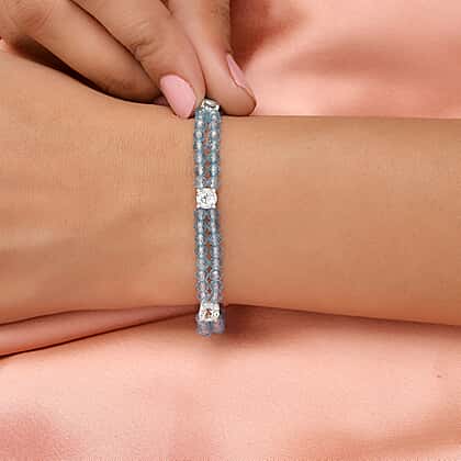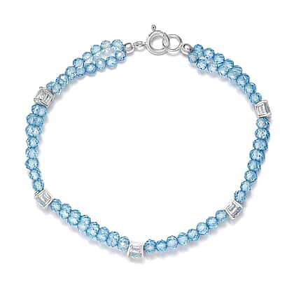 One Time Deal- Sky Blue Topaz Beads Bracelet (Size - 7.5) in Sterling Silver 30.78 Ct.
