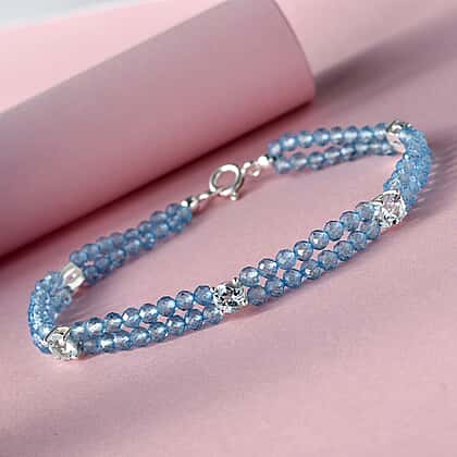 - GEMSTONE STYLE AND SETTING: The 5mmbeads are accented by round shaped gemstones in prong set stations