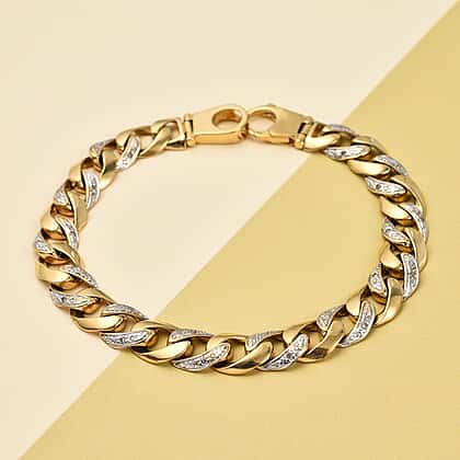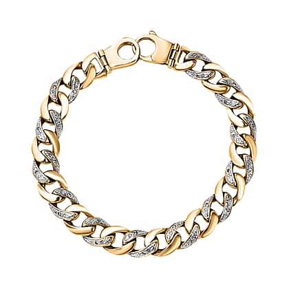 One Time Designer Closeout - 9K Solid Yellow and White Gold Diamond Curb Bracelet (Size - 8.5), Gold Wt. 30.00 Gms