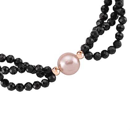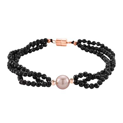 Peach Fresh Water Pearl & Black Spinel Bracelet (Size 7.5) with Magnetic Lock in Rose Gold Plated 40.00 Ct.