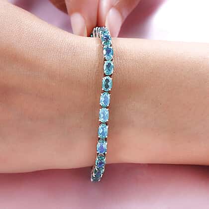 Some gemstones are subtle, others are colourful and brilliant. But the Peacock Triplet Quartz is eye-catching and impactful. This tennis bracelet is made with these visually stunning gems that delight you with their peacock feather hues ranging from bluish green to aquamarine hues. The independent and close-knit prong stations are expertly aligned to create the fabled look of a tennis bracelet.