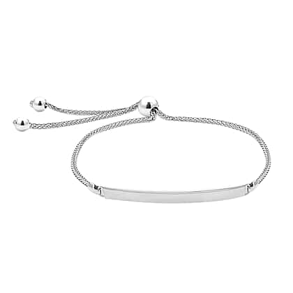 Personalised Engravable 9K White Gold Bar, Adjustable Bracelet Size 9.5 Inch