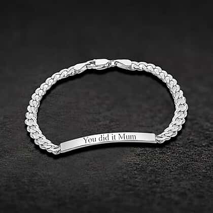 Personalised Engravable 38.5mm x 6mm ID 5.3mm Flat Curb Bracelet in Silver, Size-7.5 Inch