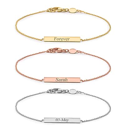 Personalised Engravable 9K Gold 3mm x 20mm Horizontal-Bar Adjustable Bracelet, Size-7-7.5 Inch