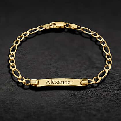Personalised Engravable 9K Gold Flat Figaro 25mm x 5.5mm ID Bracelet, Size-7 Inch