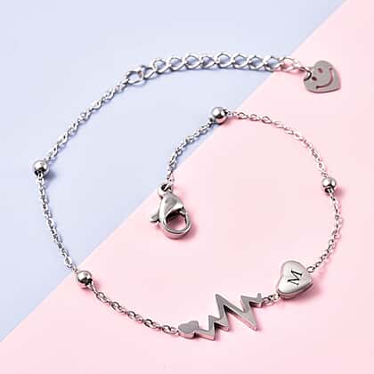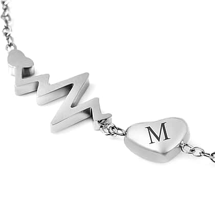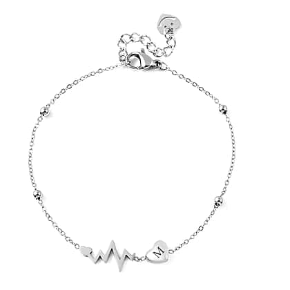Personalised Engravable Initial Heart Beat Steel Bracelet, Size 7-1 Inch, Stainless Steel