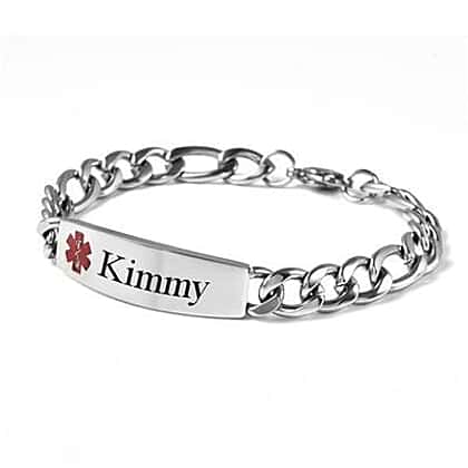 - DESIGN: The ID tag of the bracelet is enamelled with a medical symbol in red to ensure it is visible as a medical alert bracelet while the length is formed by a curb chain pattern
