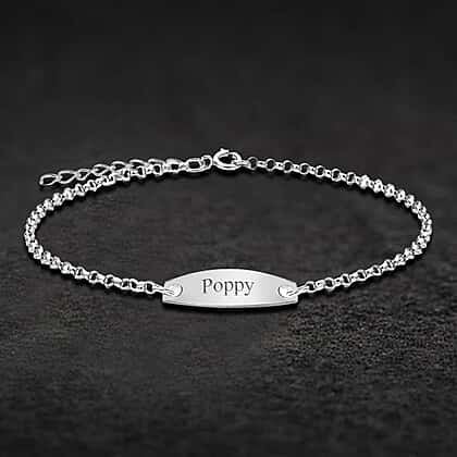 Personalised Engravable Oval 6.5mm x 15.5mm ID 2.2mm Belcher Bracelet in Silver, Size-5-6.5 Inch