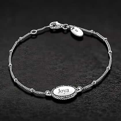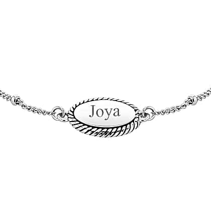 Personalised Engravable Rhodium Plated 10mm x 13.5mm Twist-Edge Oval Ball and Curb Chain Adjustable Bracelet in Silver, Size-7-7.5 Inch
