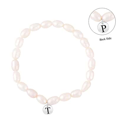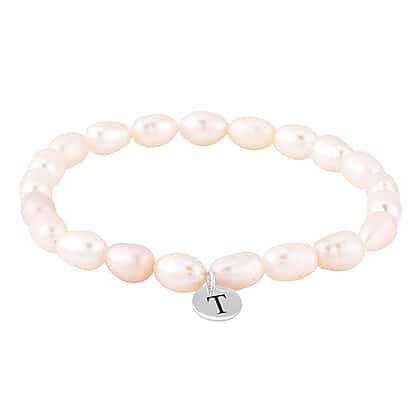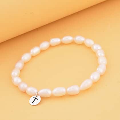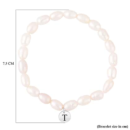 Personalised Engravable White Fresh Water Pearl Initial Bracelet in Silver, Size - 6.5 Inch