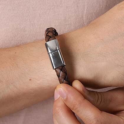 - Rustic hue and fine texturing of the genuine leather grants the bracelet a masculine look