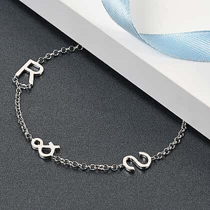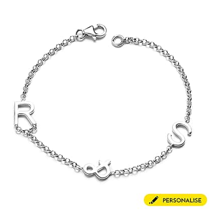 Personalised Engravable Two Alphabet + and, Name Bracelet Size 7.5 Inch in Sterling Silver