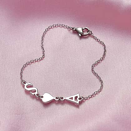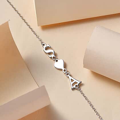 Personalised Two Initial Couple Bracelet with Heart in Silver, Size 7.25 Inch