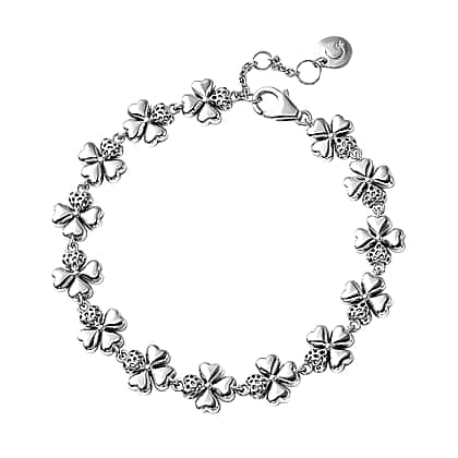 RACHEL GALLEY Four-Leaf Clover Inspired Bracelet (Size 8) in Rhodium Overlay Sterling Silver