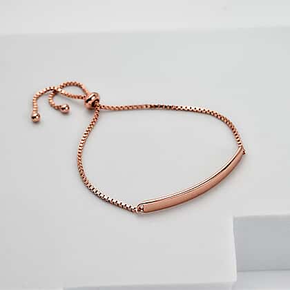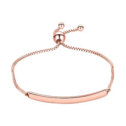 Rachel Galley Rose Gold Overlay Sterling Silver Polished Slider Adjustable Bracelet (Size 6.5 - 9 Adjustable), Silver Wt. 4.10 Gms.