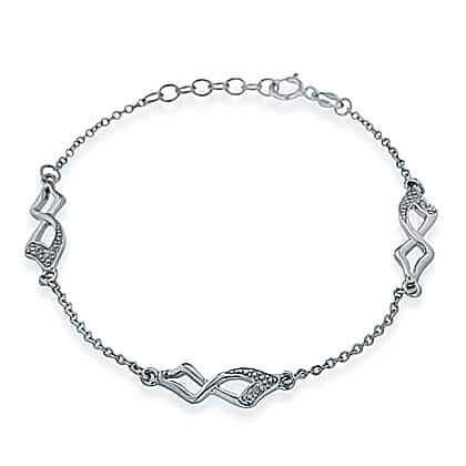 Sterling Silver Rhodium Plated Diamond Square Twist Link Bracelet 7.5 Inch