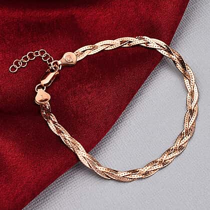 Rose Gold Overlay Sterling Silver Braided Bracelet (Size - 7.5 with 1 Inch Extender)