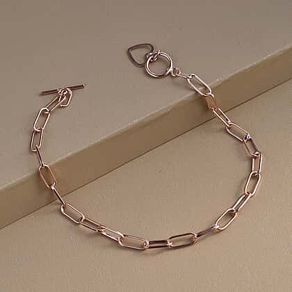Rose Gold Overlay Sterling Silver Paperclip Bracelet (Size - 7.5) With T-Bar Clasp.