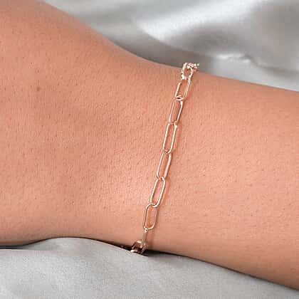 Paperclip Bracelet Size 7.5 in Rose Gold Plated Sterling Silver for Women