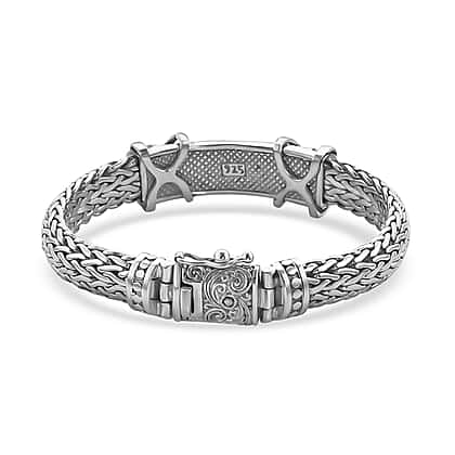 From the Royal Bali Collection, comes this exclusive Green Jade Bracelet. It is a celebration of cultural heritage of the Balinese natives featuring an eye-catching carved jade centrepiece. Set in Sterling Silver, this bracelet is a tribute to traditional craftsmanship, merging ancient Balinese art with modern wearability. The intricate carvings evoke the island's lush landscapes, making it a wearable piece of art for the discerning collector.