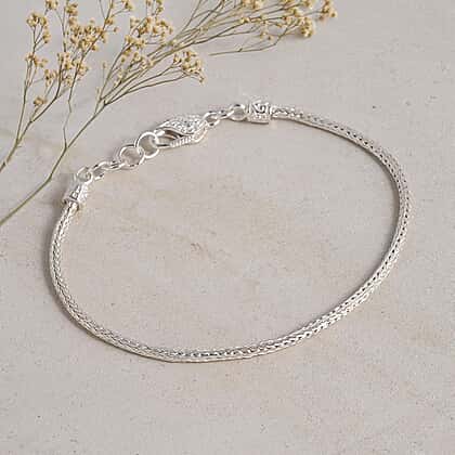 Adorn your wrist with this finely crafted bracelet from the Royal Bali Collection, showcasing an intricate woven sterling silver design inspired by traditional artistry. The braided pattern creates a textured surface that adds depth while maintaining a refined and balanced look. Its flexible structure allows it to sit comfortably, adapting naturally to the wrist, while the detailed clasp and extension links ensure a secure and adjustable fit. The polished finish enhances the natural shine of silver, making it suitable for both everyday wear and occasion styling. A versatile piece that combines subtle detailing with timeless appeal.